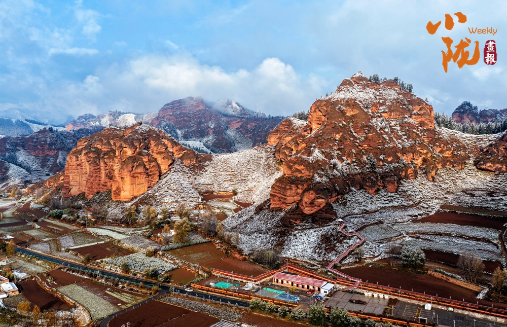 雪落天祝,本康丹霞展露出別樣景致。赭紅巖壁披覆皚皚素雪,熾烈地貌與清冽冬意在此相逢,暈染出一片紅白交織的視覺交響。