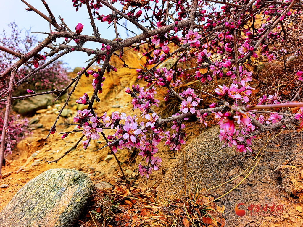 巖坡之上,蒙古扁桃盛放