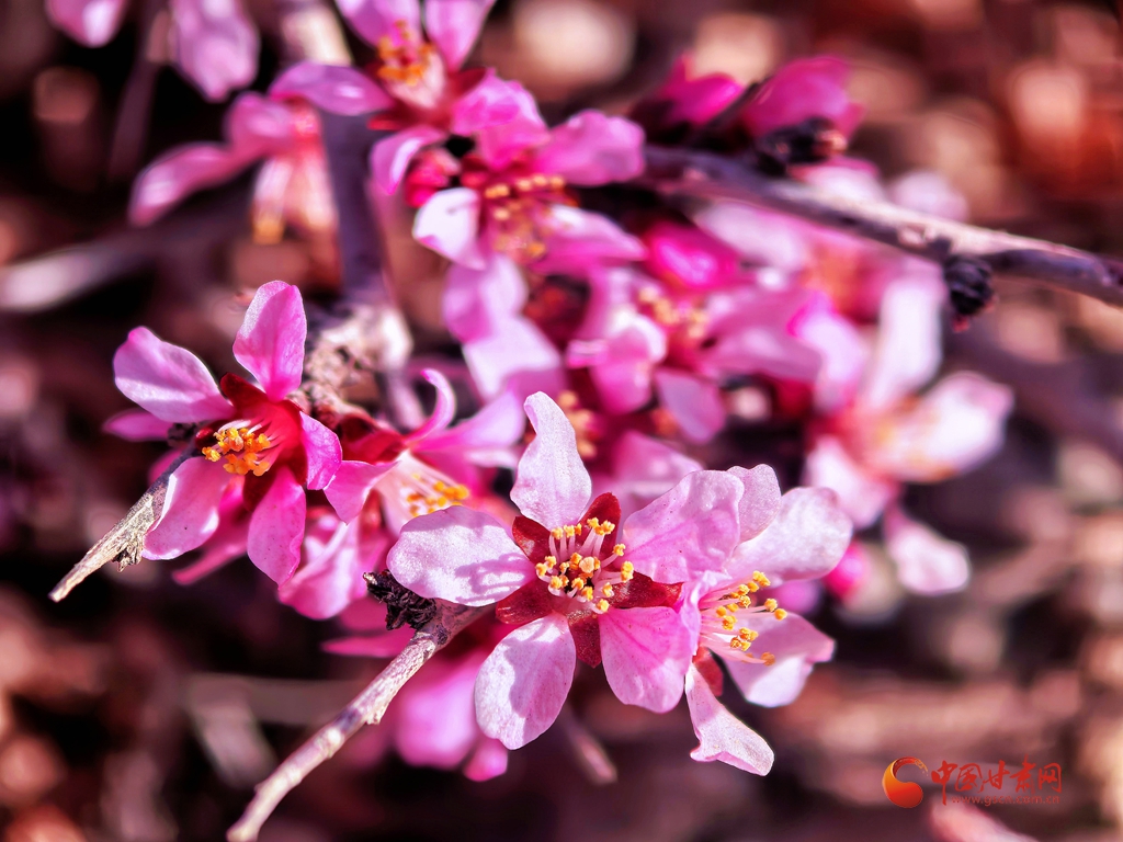 蒙古扁桃花開 祁連春意漸濃