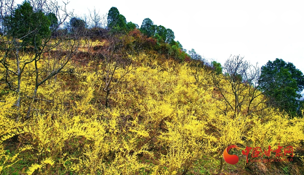 連翹花肆意綻放,明黃花海漫過山巒,將春日的蓬勃生機盡情鋪展