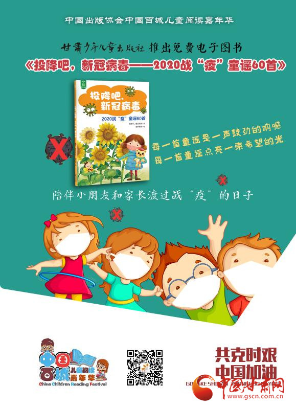 庚子之春,新冠肺炎疫情爆發(fā),全國人民奮力投身到這場疫情防控阻擊戰(zhàn)中,孩子們、兒童文學(xué)作家也紛紛創(chuàng)作了大量優(yōu)秀的童謠。2月份,讀者出版集團旗下甘肅少年兒童出版社(以下簡稱:甘肅少兒社),策劃上線了免費公益數(shù)字出版物《投降吧,新冠病毒——2020戰(zhàn)“疫”童謠60首》。書中收錄60首優(yōu)秀童謠作品,對兒童進行防疫科普宣傳,以期提高兒童科學(xué)防護意識和戰(zhàn)勝病毒的信心。一首首童謠匯集起來,架起了孩子和家長共同抗疫的橋梁,也點亮了孩子們用稚嫩的眼光和思維認(rèn)識這場災(zāi)難的微光。