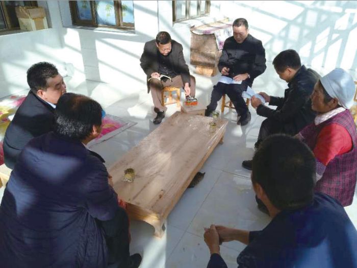 高凱、王志祥等在羊永鎮(zhèn)白土村二社王石山保家調研安全飲水事宜?!⊥鯐灾?nbsp;攝