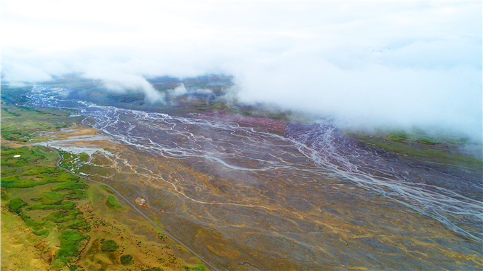 戈壁晚霞和暮鼓,疏勒河流古。聽靜水流深,百轉(zhuǎn)千回,澤潤荒原土。