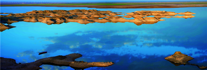 引來弱水三農(nóng)幸,澆灌千千頃。贊塞上春光,綠水青山,早靚原荒憬。