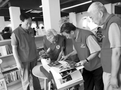 社區(qū)退休黨員在“紅旗書(shū)屋”里翻看大型圖冊(cè)《中國(guó)》。
