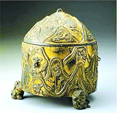 東漢銅鎏金山紋獸足樽,現(xiàn)藏于臺北故宮博物院 資料圖片