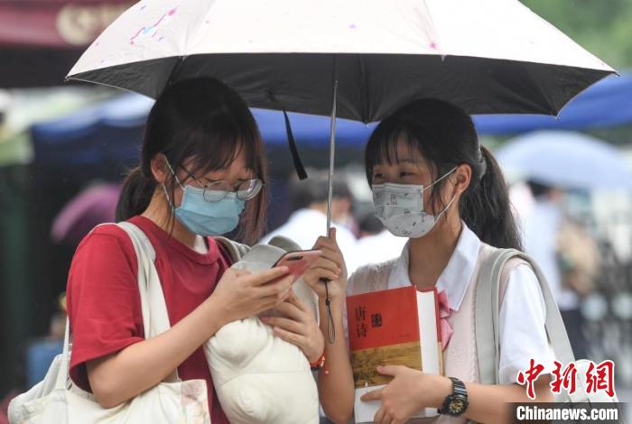 浙江高考結(jié)束首日,在杭州學(xué)軍中學(xué)門口,考生抱著復(fù)習(xí)資料準(zhǔn)備回家。 王剛 攝