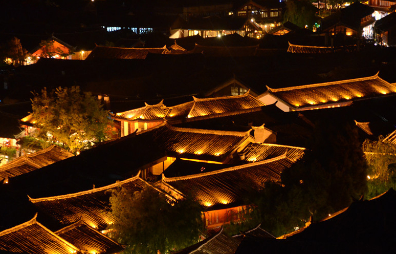 黃昏時(shí),主人再去打水澆花時(shí),我又回到了穿城而過的水流之中。這時(shí),古城五彩的燈光把渠水輝映得五彩斑斕。游客聚集的茶樓酒吧中,傳來人們的歡笑與歌唱。這些人在自己所來的遠(yuǎn)處地方,即便是寂靜時(shí)分,內(nèi)心也很喧嘩。在這里,盡情歡歌處,夜涼如水,他們的心像一滴水一樣晶瑩。