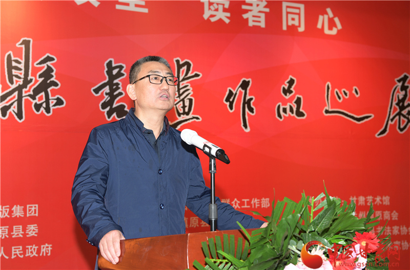 王登渤在致辭中說,素有“書法之鄉(xiāng)”的鎮(zhèn)原,歷史文化悠久。書法、繪畫興始漢代,盛至清末,而喜好書畫之風則歷史更久。在歷代書畫家的精心耕耘下,鎮(zhèn)原凝聚起一股濃郁的習書作畫的藝術氣息。經過百余年的傳承與發(fā)展,如今的鎮(zhèn)原書畫之風盛行,無論城鎮(zhèn)鄉(xiāng)村、大家小戶,貼字掛畫蔚然成風,涌現出的一大批書畫名流,猶若星辰,遍布于全國各地。作為一個縣,此次能在蘭州舉辦書畫巡展,藝術水準很高,充分展示出鎮(zhèn)原縣“中國書法之鄉(xiāng)”的深厚文化內涵和鎮(zhèn)原縣書畫家們的才情智慧和藝術品格,也全面展示了鎮(zhèn)原發(fā)展變化的嶄新面貌。希望鎮(zhèn)原縣繼續(xù)加大扶持發(fā)展書畫事業(yè),持續(xù)提升鎮(zhèn)原書畫藝術發(fā)展水平,也希望涌現出更多的書畫藝術家,為繁榮當地文藝事業(yè)、助力脫貧攻堅、美麗鄉(xiāng)村建設作出應盡的貢獻。