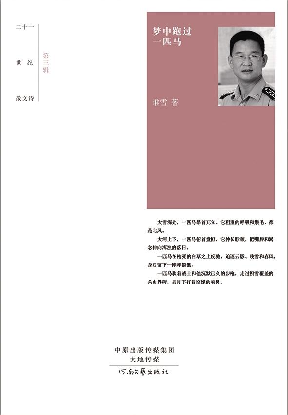 近期,堆雪的軍旅長篇散文詩集《兵詞》將由解放軍出版社出版發(fā)行,這一百多首散文詩,是他軍旅生活的詩性抒寫、士兵情懷的靈魂歌吟、鐵血沙盤的精神熔鑄、迷彩青春的深情回眸,也是他對廣袤西北和鏗鏘軍營的精神回饋。堆雪說:“或許,在詩壇的花叢中,我本不曾采擷到一兩朵馨香與璀璨。但這不要緊,這并不妨礙我醉心文學,垂青詩神。”