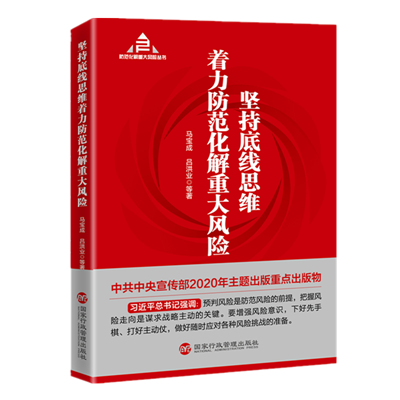 《堅(jiān)持底線思維著力防范化解重大風(fēng)險(xiǎn)》是該系列叢書(shū)的總論,由中央黨校(國(guó)家行政學(xué)院)副校長(zhǎng)應(yīng)急管理培訓(xùn)中心(中歐應(yīng)急管理學(xué)院)主任(院長(zhǎng))馬寶成等合作撰寫(xiě),現(xiàn)已由國(guó)家行政管理出版社正式出版發(fā)行。
