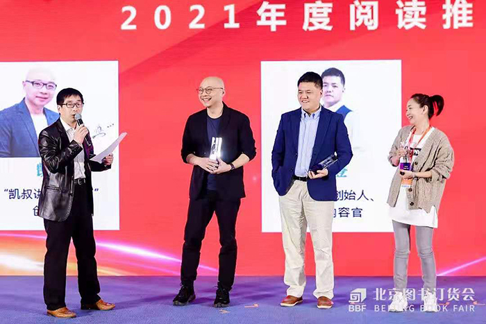 論壇上,為熱心閱讀推廣事業(yè)并做出了突出貢獻(xiàn)的三位“直播達(dá)人”——樊登讀書創(chuàng)始人、首席內(nèi)容官樊登,著名節(jié)目主持人王芳,“凱叔講故事APP”創(chuàng)始人王凱,獲頒“2021年度閱讀推廣大使”證牌。此外,融合國家出版發(fā)行信息公共服務(wù)平臺的CNONIX應(yīng)用示范單位銷售數(shù)據(jù)和商報·奧示監(jiān)測數(shù)據(jù)的2020年及2021開年最新統(tǒng)計數(shù)據(jù)分析報告同期發(fā)布。