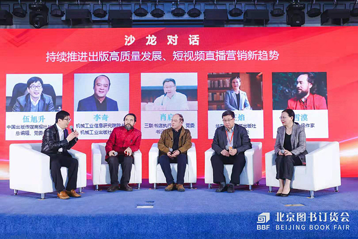 沙龍對話環(huán)節(jié)中,生活·讀書·新知三聯(lián)書店總編輯肖啟明,機(jī)械工業(yè)信息研究院院長、機(jī)械工業(yè)出版社社長李奇,華東師范大學(xué)出版社董事長、社長王焰,國家一級作家雪漠,共同探討短視頻直播營銷心得、經(jīng)驗(yàn)及趨勢。