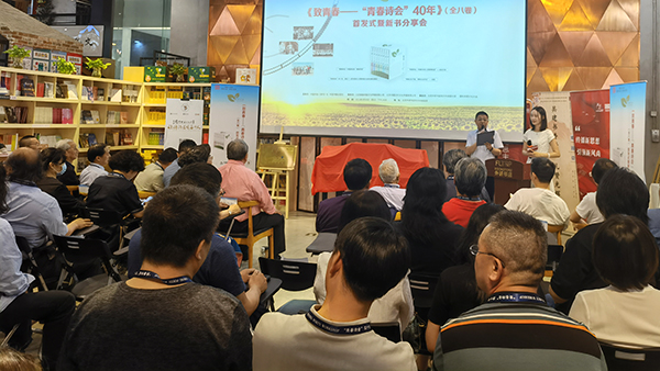 青春彌漫,濟(jì)濟(jì)一堂。5月30日下午,《致青春——“青春詩會(huì)”40年》(全八卷)新書首發(fā)式暨詩歌分享會(huì)在北京舉辦。中國作協(xié)副主席、書記處書記吉狄馬加,中國作協(xié)書記處書記邱華棟,北京大學(xué)教授、評(píng)論家謝冕,《詩刊》社主編李少君,中國書籍出版社社長王平等嘉賓出席活動(dòng)并致辭?;顒?dòng)期間,與會(huì)嘉賓共同為本套叢書揭幕并就此套叢書進(jìn)行了分組對(duì)談。