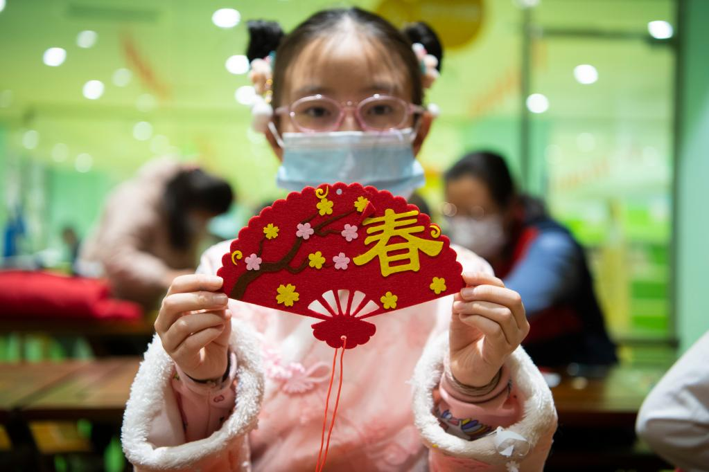 2月6日,小朋友和家長在太原市圖書館參加“巧手迎新春”手工DIY活動(dòng)。