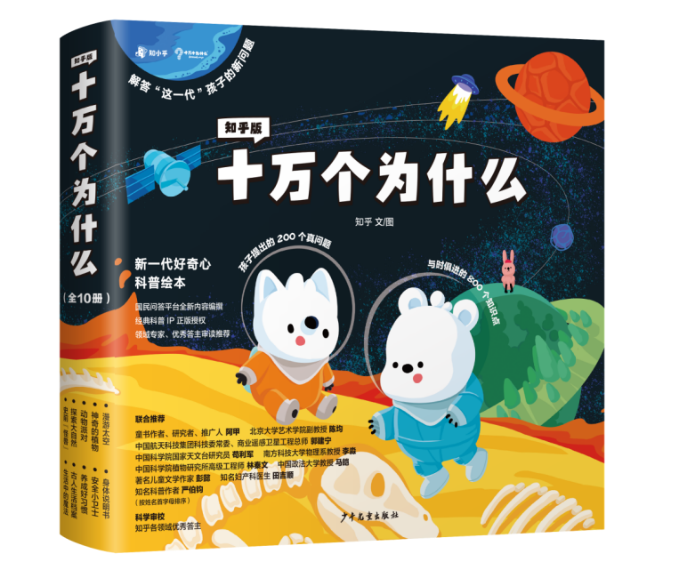 不是所有的科普讀物,都能叫《十萬個(gè)為什么》。1961年至今,《十萬個(gè)為什么》累計(jì)發(fā)行量近2億冊(cè),是至今仍未被超越的現(xiàn)象級(jí)科普?qǐng)D書。這套書在普及和傳播科學(xué)知識(shí)方面,發(fā)揮了非常積極的作用,影響了中國(guó)幾代青少年,堪稱是新中國(guó)影響力最大的青少年科學(xué)啟蒙讀物。作為國(guó)民級(jí)科普經(jīng)典,《十萬個(gè)為什么》誕生至今已經(jīng)60多年。盡管已經(jīng)有了之前版本的《十萬個(gè)為什么》,但是時(shí)代是不斷進(jìn)步的,特別是進(jìn)入數(shù)碼時(shí)代以后,孩子們比以往的所有時(shí)代,擁有著更多的信息和知識(shí),腦袋瓜里也萌發(fā)著更新的問題和疑惑。他們發(fā)出的越來越多“超綱”問題,是以前的課本、科普書上沒有的,也讓父母?jìng)兘?jīng)常面對(duì)“不知如何作答”的情況。新的“為什么”,需要新的解答。在少兒經(jīng)典科普《十萬個(gè)為什么》出版60周年之際,知乎攜手上海少年兒童出版社,收集當(dāng)代孩子的真問題,邀請(qǐng)各領(lǐng)域機(jī)構(gòu)和專家為孩子們寫下新答案,推出了全新的知乎版《十萬個(gè)為什么》,盡量讓孩子們的問題都有答案。