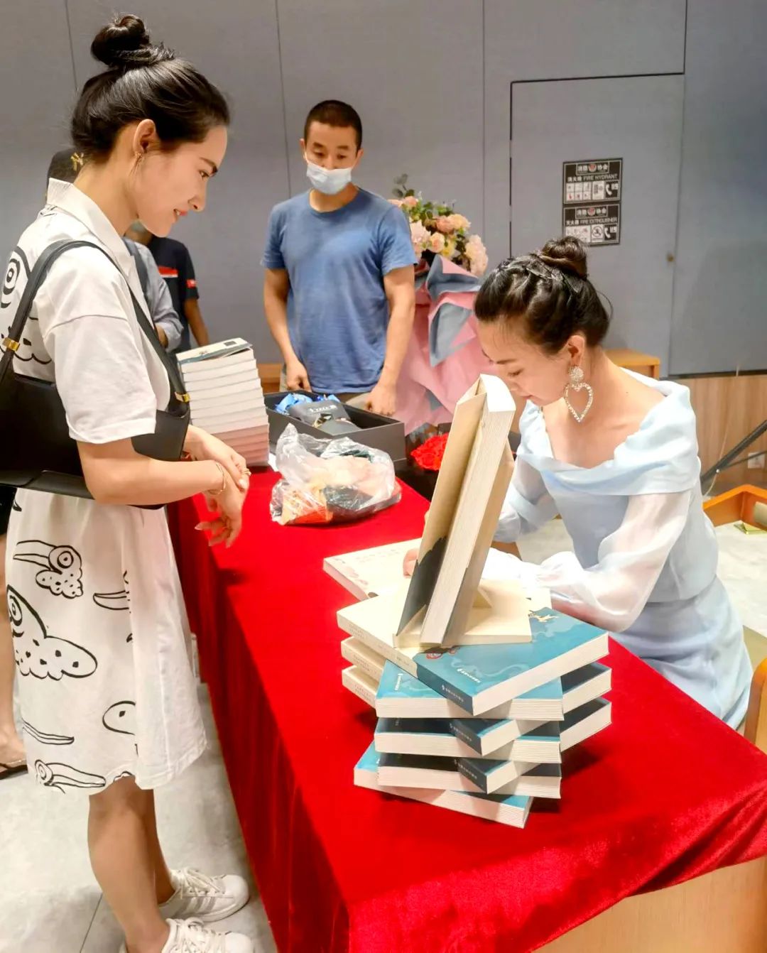 見(jiàn)面會(huì)還設(shè)計(jì)了互動(dòng)環(huán)節(jié),主編李莉現(xiàn)場(chǎng)教學(xué),五位敦煌舞愛(ài)好者認(rèn)真模仿,作者還向參與互動(dòng)的讀者贈(zèng)送了本書(shū)。在簽售環(huán)節(jié)后,作者及參演人員和讀者合影留念。