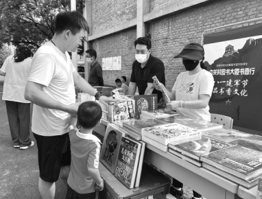 中關村圖書大廈攜手西郊機場居民委員會走進西郊機場家屬區(qū),開展“八一建軍節(jié) 品書香文化”主題宣傳活動。