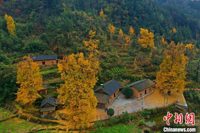 資料圖:幾棵千年銀杏被秋意染成金黃。 吳延陵 攝