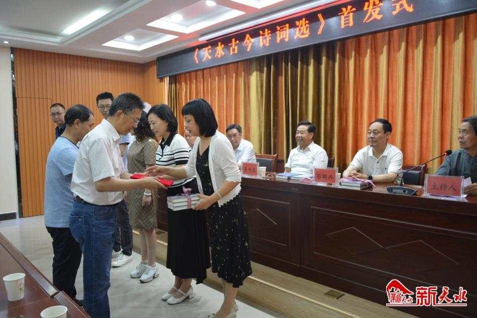 首發(fā)式上,天水市詩詞學會還為天水市圖書館、天水市檔案館、秦州區(qū)圖書館等單位贈送了《天水古今詩詞選》。