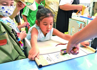 8月20日,國家圖書館少年兒童館舉辦“朱夏國風(fēng)日”傳統(tǒng)文化沉浸式體驗活動,為小讀者創(chuàng)造別樣的閱讀體驗。同時,國家圖書館舉辦的多個展覽也成為孩子們避暑長知識的好去處。
