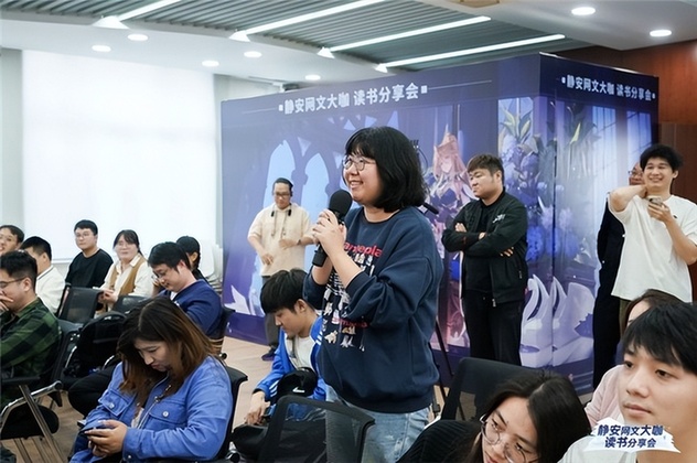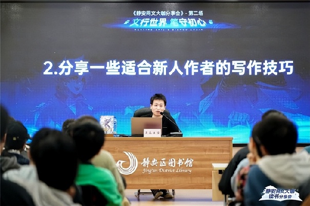 本次分享會再次邀請知名網(wǎng)絡(luò)文學作家天蠶土豆作為主講嘉賓,與讀者們面對面交流,分享他的寫作技巧和創(chuàng)作趣事,在互動環(huán)節(jié)解答讀者對網(wǎng)絡(luò)文學作品的好奇?;顒蝇F(xiàn)場熱情積極,在靜安區(qū)圖書館充滿書卷氣的環(huán)境里展現(xiàn)著獨特魅力。