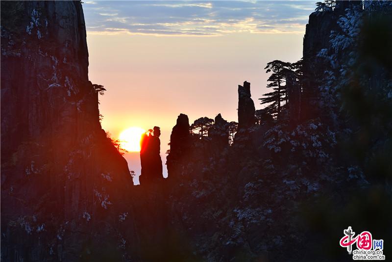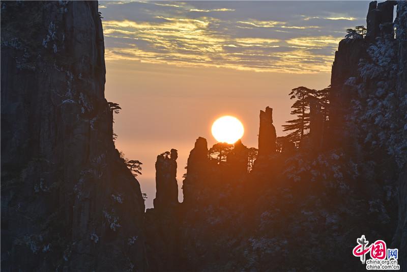【點(diǎn)睛】新年伊始,黃山風(fēng)景區(qū)迎接今年的第一縷陽光,在一片歡呼聲中太陽跳出了地平線來到了黃山之巔。