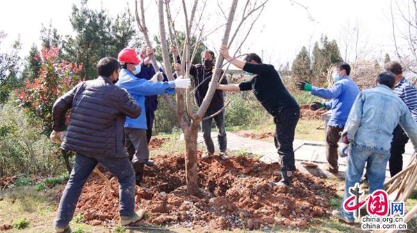 合力扶苗、揮鍬填土、踩實(shí)壓緊、提桶澆水……3月10日,在湖南省武岡市荷塘村義務(wù)植樹基地,黨員群眾分工協(xié)作、相互配合,每個(gè)環(huán)節(jié)都一絲不茍。經(jīng)過一上午的忙碌, 一棵棵櫻花樹迎風(fēng)挺立,把山頭裝點(diǎn)得綠意盎然。今年,武岡繼續(xù)啟動(dòng)55個(gè)美麗鄉(xiāng)村綠化美化建設(shè),繼續(xù)改善城鄉(xiāng)環(huán)境,提高人民群眾的獲得感和幸福感,為爭創(chuàng)省級森林城市“添磚加瓦”。