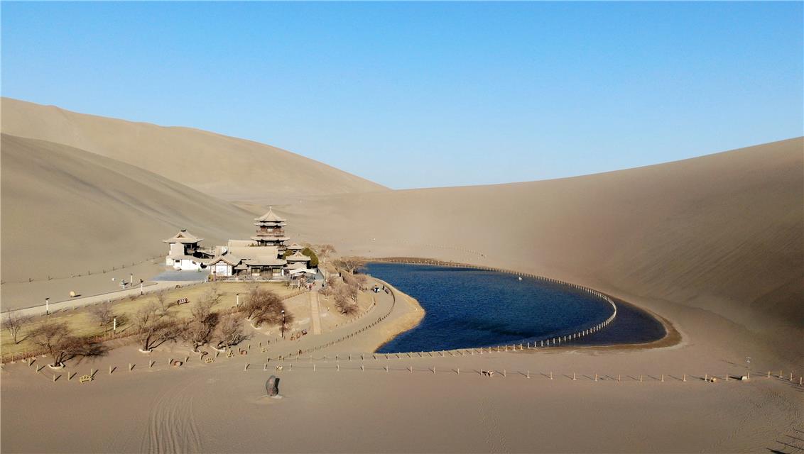 3月17日拍攝的甘肅省敦煌市鳴沙山月牙泉景區(qū)(無人機照片)。張曉亮攝