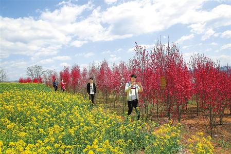 郭坪的麗桃花多為紅色,那紅,于深紅中又透著一種清麗的粉,使繁盛的花朵,飽滿中又呈現(xiàn)出一種吹彈可破的輕盈,而沁人心脾的花香,又使人忍不住就想把臉埋在繁花間,把花香全都嗅進五臟六腑。此時,花株猶如無數(shù)把紅傘,傘下,五顏六色的衣裳與花樹相映成趣。樹上的花對著人笑,地上的人對著花笑。“去年今日此門中,人面桃花相映紅。人面不知何處去,桃花依舊笑春風。”崔護的詩也不知不覺從腦海里跳將出來。傳說詩人崔護的這首《題都城南莊》寫的是,他進京考進士落第,一個人悵然走到京城南郊。走得口渴到一戶人家討水,一美麗女子站在庭院的桃花下,嬌羞地把一瓢水遞給了他,那女子的美貌驚艷了詩人的眼睛。第二年春天崔護復(fù)來南莊,然而那座庭院里,桃花依然如故,而樹下卻不見了佳人的芳蹤,于是留下此詩。面對花海,也許你會突發(fā)奇想,如果崔護能在詩里復(fù)活,想必他一定也會來郭坪的麗桃花海走一遭,那么這首詩一定會是另外的意境了。因為此時的花樹下,滿是顧盼生輝的佳人,也不知崔護要題詩給哪一位女子了。