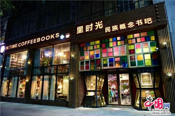 這座命名“里時光”的民族概念書吧,位于沱江鎮(zhèn)翠華路華都豪苑一樓,經(jīng)營面積不算太寬,僅有600平方米,是一家以文化創(chuàng)意為核心的復合式經(jīng)營模式書吧。書吧以提供閱讀場地、傳播民族文化服務為主旨,自2016年11月成立以來,自籌資金300萬元,配置10萬余冊圖書,展示當?shù)厣鲜兰o六十年代至七十年代老舊物品200余件。