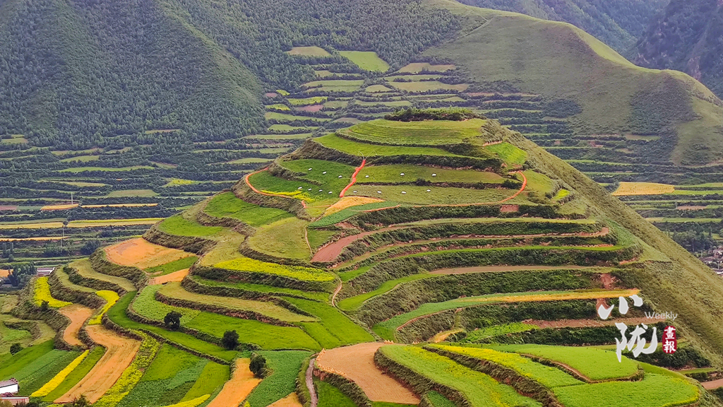 行走在冶力關(guān),目之所及皆是美景,在半山腰上向遠處眺望,只見遠山層巒疊翠,云蒸霞蔚,梯田綠黃交錯,如詩如畫。