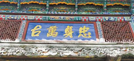 抱廈明間為“忠貞萬古”,雖沒有落款署名,但經(jīng)書法專家根據(jù)左宗棠同時代書法墨跡鑒定為左宗棠手跡。書體顏體味很濃,功底深厚,氣象大氣。