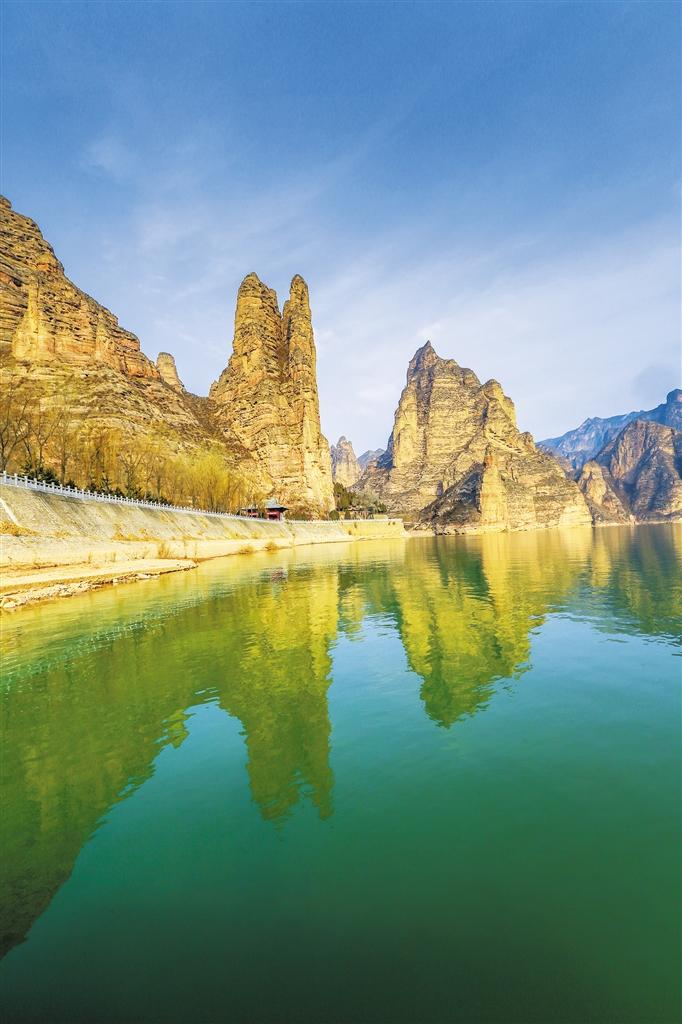 炳靈寺世界文化遺產(chǎn)旅游區(qū)的標(biāo)志姊妹峰。首席記者 田蹊 攝
