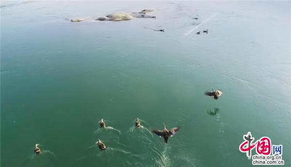 1月12日,在湖南桃江羞女湖國家濕地公園當(dāng)?shù)財z影家協(xié)會成員用無人機(jī)有幸拍到一群正在資江戲水的野生保護(hù)物種——斑嘴鴨。