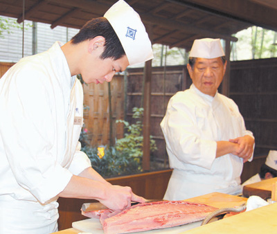 日本一名年輕和食廚師正在學(xué)習(xí)處理食材。記者 劉軍國