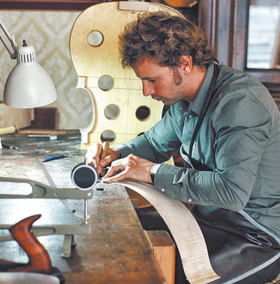 徜徉在克雷莫納街頭,提琴雕塑、制作室櫥窗、小提琴音樂會(huì)海報(bào)隨處可見。在克雷莫納主教座堂正北側(cè),有一家不大的提琴工作室,店主是33歲的瓦萊里奧·費(fèi)隆。年紀(jì)雖輕,費(fèi)隆已斬獲意大利提琴制作比賽最佳小提琴獎(jiǎng)、中提琴獎(jiǎng)、大提琴獎(jiǎng)等許多獎(jiǎng)項(xiàng)。