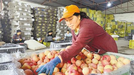 莊浪縣萬泉鎮(zhèn)的蔬果保鮮庫里,工人將存放的蘋果打包發(fā)往外地市場。