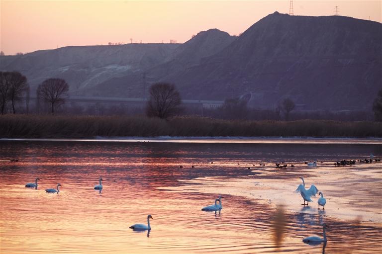 蘭州打造百里黃河風(fēng)情線,以蘭州為中心的黃河兩岸成了網(wǎng)紅打卡地。據(jù)悉,隨著黃河上游生態(tài)環(huán)境的改善,越來越多的水鳥在這里過冬,成為蘭州的獨(dú)特景觀,捕獲了不少市民及外地游客的歡心。據(jù)統(tǒng)計(jì),每年約有上萬只候鳥光臨蘭州,黃河風(fēng)情線以及黃河銀灘濕地已成為候鳥棲息的“天堂”,市民不用去外地,在家門口的黃河兩岸就可以看見來蘭州越冬的白天鵝、紅嘴鷗、灰鶴、大白鷺、中華秋沙鴨等珍稀鳥類,今年已有17只天鵝落戶蘭州。