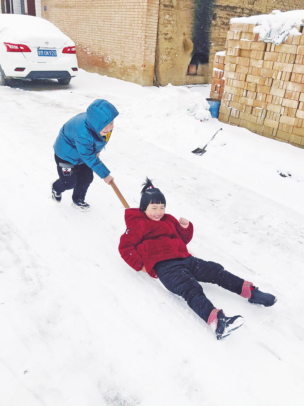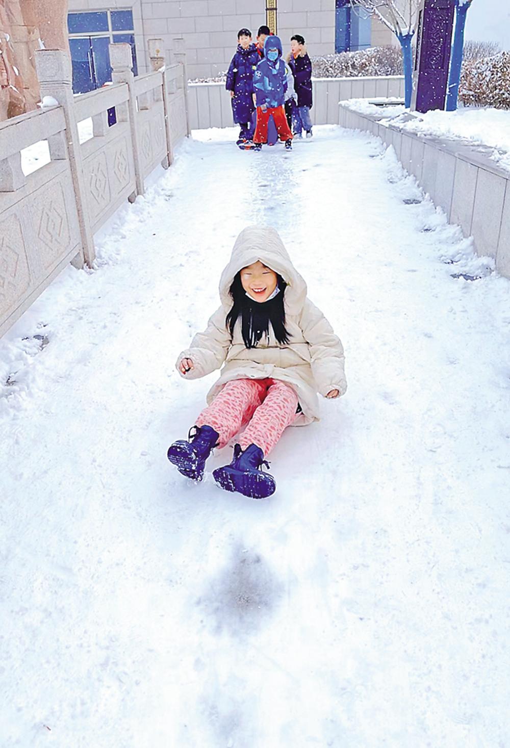 雪中嬉戲 本報(bào)記者 張寧寧 攝