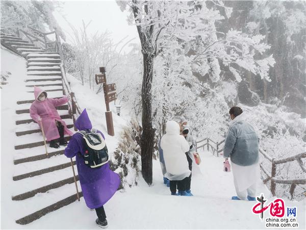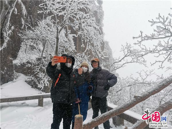 “哇! 好漂亮?。?rdquo;2月17日,安徽黃山風景區(qū)再次迎降春雪,驚羨慕名前來賞雪的游客。