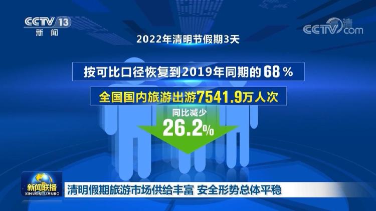 央視網(wǎng)消息(新聞聯(lián)播):今年清明節(jié)假期,我國(guó)旅游市場(chǎng)供給豐富、安全形勢(shì)總體平穩(wěn),網(wǎng)絡(luò)祭掃人次明顯增加。