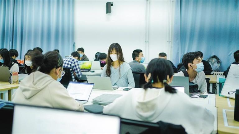 文學(xué)院2021級(jí)的洪逸下午的課程是“大學(xué)寫作”,早早就來(lái)到教室的她表示,“在教室上課,老師講授的知識(shí)更加直觀,課堂的互動(dòng)也變得更加生動(dòng)豐富了。”
