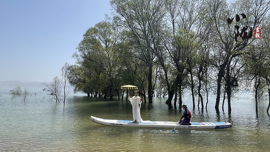 春日里,炳靈湖上鶴舞鷗翔,風(fēng)如絲,水如綢,蕩舟其中,正是一幅“舟行碧波上,人在畫中游”的美麗畫卷。