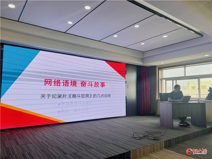 隨后,舉辦了《幸福中國——奮斗甘肅》大型網(wǎng)絡(luò)紀(jì)錄片導(dǎo)演培訓(xùn)會,會議由蘭州電視臺紀(jì)錄片創(chuàng)作中心導(dǎo)演趙國鵬作為主講人,中國甘肅網(wǎng)總編輯張振宇主持。
