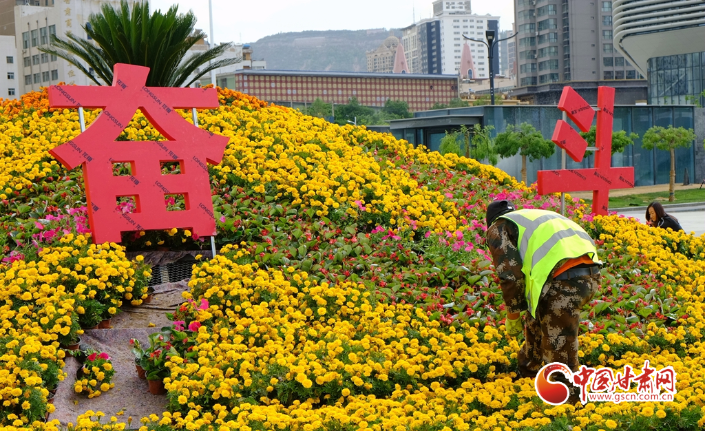 蘭州市東方紅廣場全新的花壇喜迎省第十四次黨代會