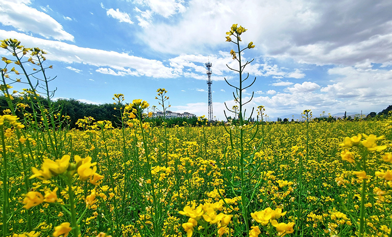 以大地為布,金黃的油菜花開滿鄉(xiāng)間,與鄉(xiāng)村民居交相輝映,構(gòu)成一幅美麗的鄉(xiāng)村畫卷,也開成了鄉(xiāng)村振興的“致富花”。去年,沙河鎮(zhèn)西寨村、五三村依托“一戶一塊田”高標(biāo)準(zhǔn)農(nóng)田建設(shè)后的便利條件,大力調(diào)整產(chǎn)業(yè)結(jié)構(gòu),積極引進(jìn)專業(yè)合作社在本村建立蔬菜種植基地。今年,沙河鎮(zhèn)種植油菜300多畝,從5月中旬開始,油菜花便陸續(xù)開放,現(xiàn)在已經(jīng)進(jìn)入全盛時(shí)期。