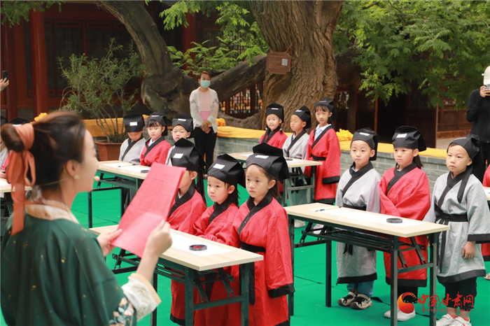 活動(dòng)二,“開筆啟蒙 詩(shī)禮少年”開筆禮活動(dòng)成功舉辦??鬃釉唬?ldquo;不學(xué)禮,無(wú)以立”,“開筆禮”古稱“破蒙”,為人生“四禮”之一,也是少兒開始識(shí)字習(xí)禮的一種啟蒙教育形式,寄托了對(duì)孩子成長(zhǎng)的美好企盼。少年智則國(guó)智,少年強(qiáng)則國(guó)強(qiáng),在文廟舉辦“開筆禮”,就是為了傳承中華優(yōu)秀傳統(tǒng),增強(qiáng)學(xué)子文化自信,激發(fā)學(xué)習(xí)熱情,為中華民族的偉大復(fù)興刻苦學(xué)習(xí),努力奮斗。
