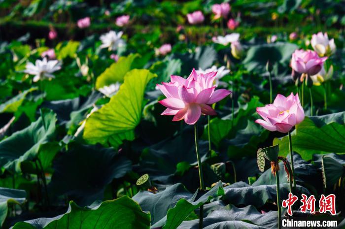 荷花競相開放,嬌艷清新惹人醉。 李南軒 攝