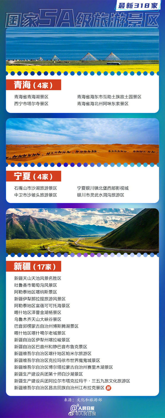 文旅部7月15日正式確定12家景區(qū)為國家5A級旅游景區(qū)。截至目前,全國共有318家5A景區(qū)。收好這份最新5A景區(qū)全名單↓↓